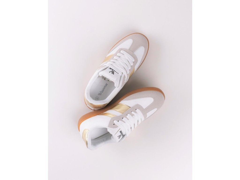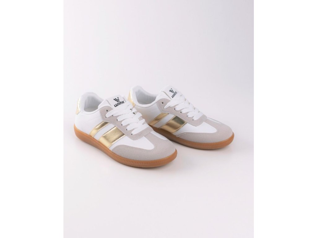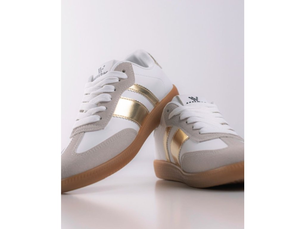 Dívčí a dámské tenisky v bílozlaté barvě.