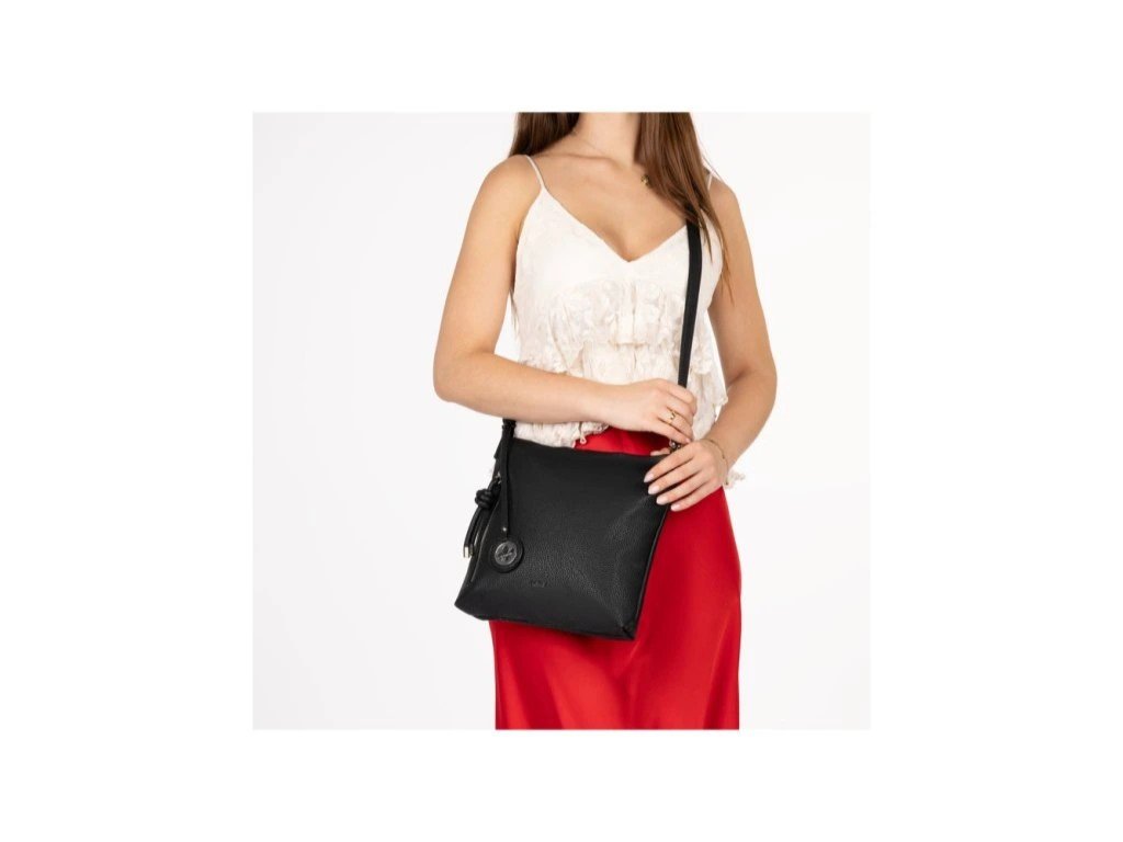 Dámská černá hladká kabelka přes rameno.