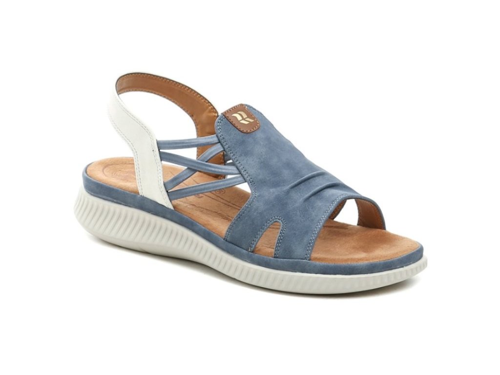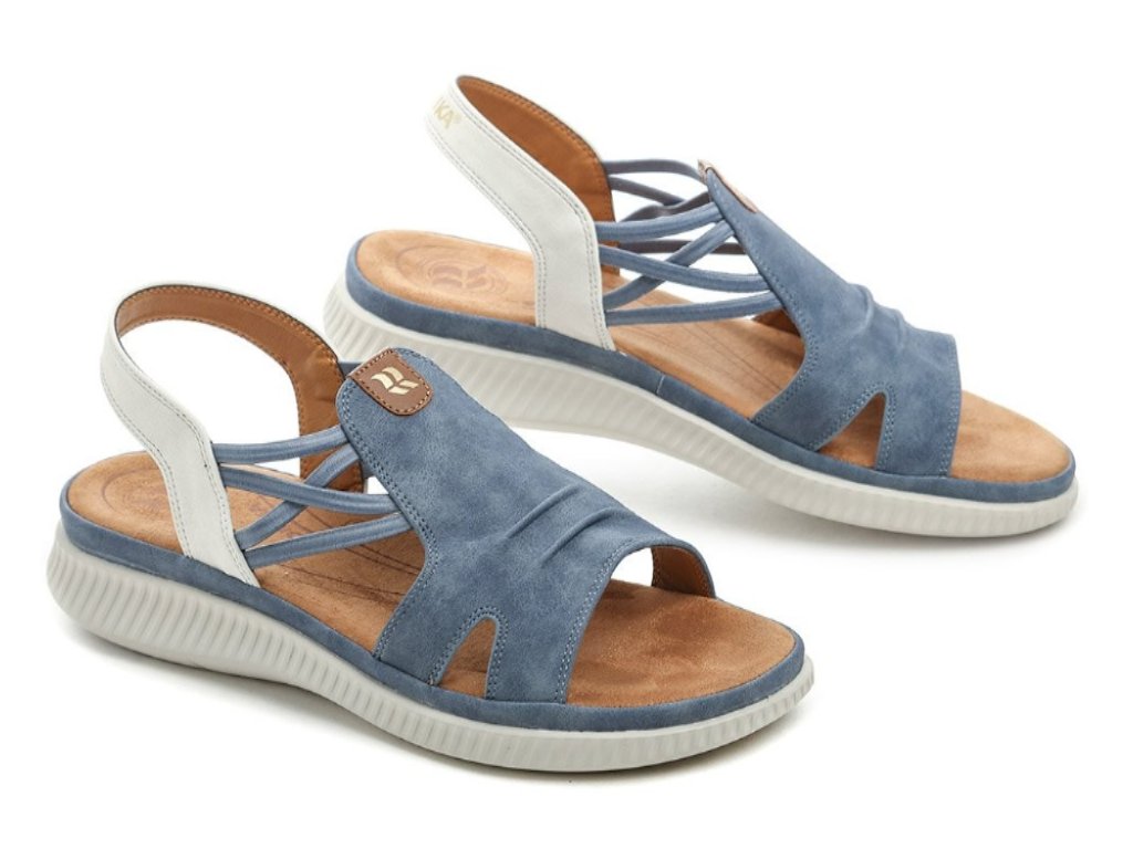 Dámské modré sandále na mírném klínku s měkkým došlapem.
